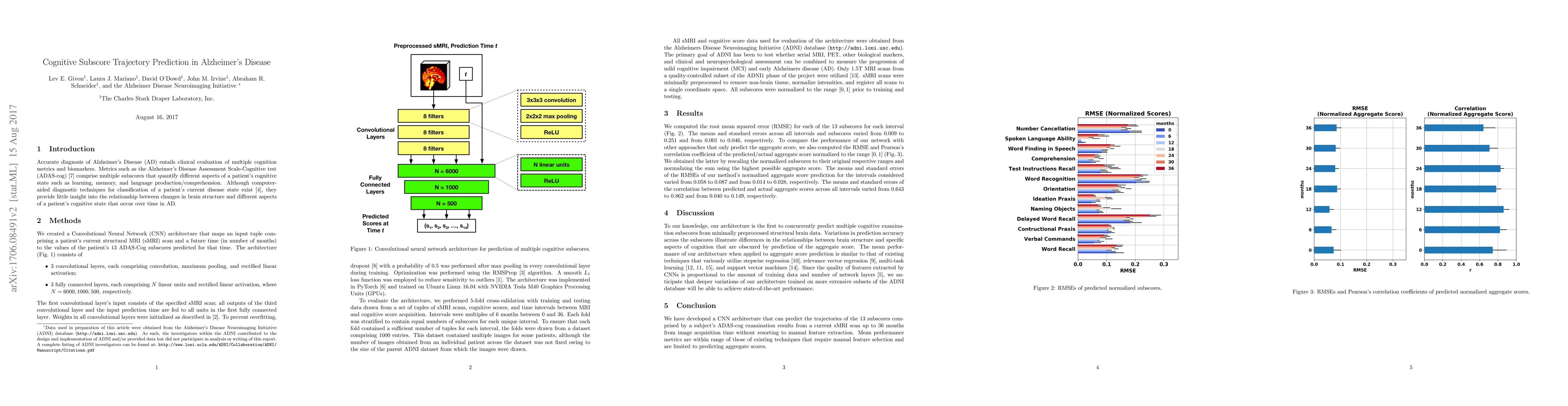 A study developed a Convolutional Neural Network to predict cognitive subscore trajectories in Alzheimer's Disease from structural MRI scans, showing promising performance metrics comparable to existing techniques with manual feature selection.
