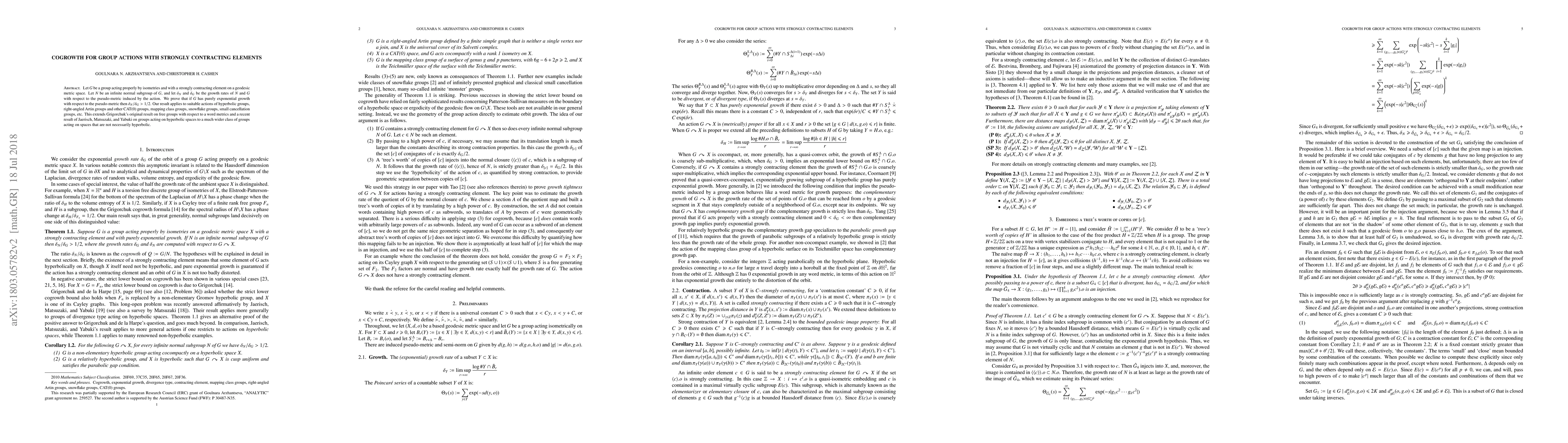 Let $G$ be a group acting properly by isometries and with a strongly contracting element on a geodesic metric space. Let $N$ be an infinite normal subgroup of $G$, and let $\delta_N$ and $\delta_G$ be the growth rates of $N$ and $G$ with respect to the pseudo-metric induced by the action. We prove that if $G$ has purely exponential growth with respect to the pseudo-metric then $\delta_N/\delta_G>1/2$. Our result applies to suitable actions of hyperbolic groups, right-angled Artin groups and other CAT(0) groups, mapping class groups, snowflake groups, small cancellation groups, etc. This extends Grigorchuk's original result on free groups with respect to a word metrics and a recent result of Jaerisch, Matsuzaki, and Yabuki on groups acting on hyperbolic spaces to a much wider class of groups acting on spaces that are not necessarily hyperbolic.