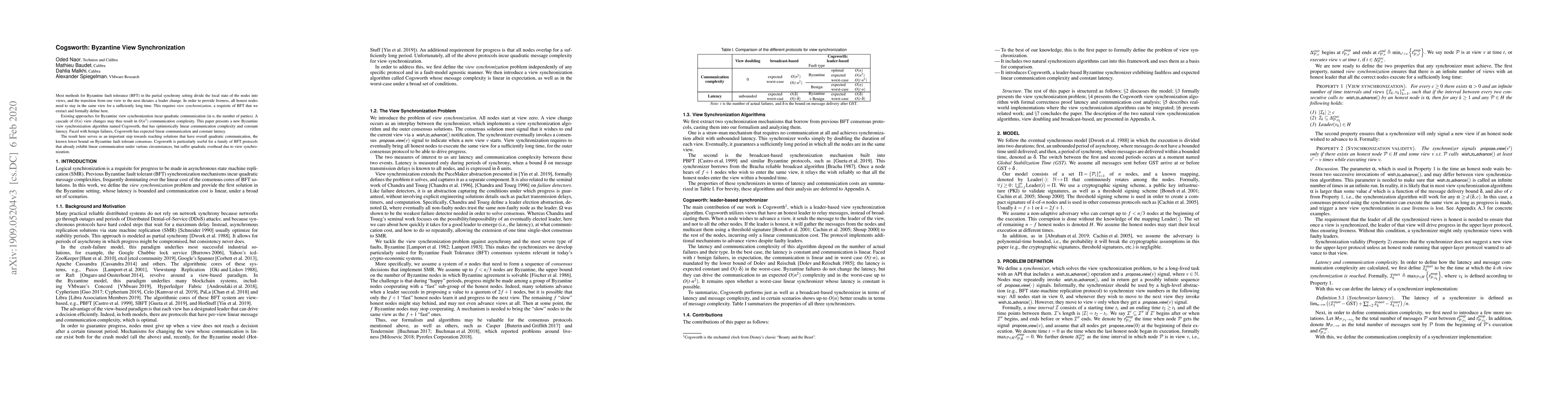 Most methods for Byzantine fault tolerance (BFT) in the partial synchrony setting divide the local state of the nodes into views, and the transition from one view to the next dictates a leader change. In order to provide liveness, all honest nodes need to stay in the same view for a sufficiently long time. This requires \emph{view synchronization}, a requisite of BFT that we extract and formally define here. Existing approaches for Byzantine view synchronization incur quadratic communication (in $n$, the number of parties). A cascade of $O(n)$ view changes may thus result in $O(n^3)$ communication complexity. This paper presents a new Byzantine view synchronization algorithm named Cogsworth, that has optimistically linear communication complexity and constant latency. Faced with benign failures, Cogsworth has expected linear communication and constant latency. The result here serves as an important step towards reaching solutions that have overall quadratic communication, the known lower bound on Byzantine fault tolerant consensus. Cogsworth is particularly useful for a family of BFT protocols that already exhibit linear communication under various circumstances, but suffer quadratic overhead due to view synchronization.