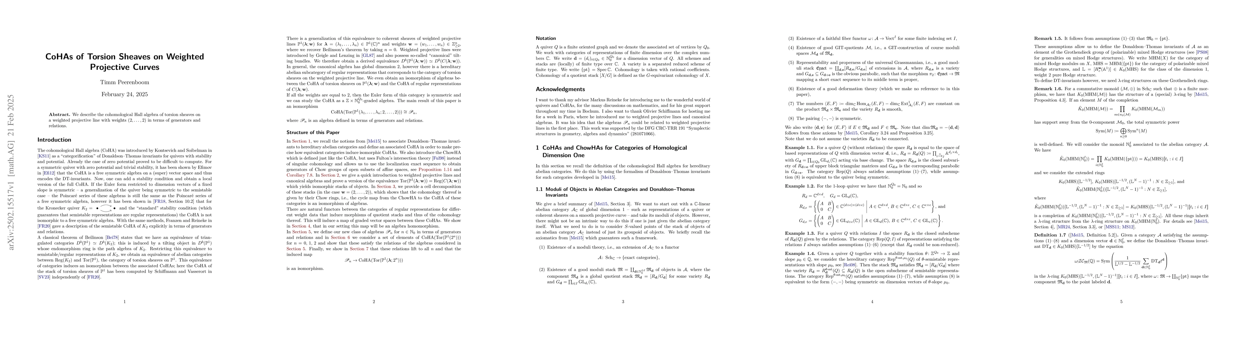 Summary: This paper elucidates the cohomological Hall algebra for torsion sheaves on a weighted projective line with uniform weights, detailing its structure through generators and relations.