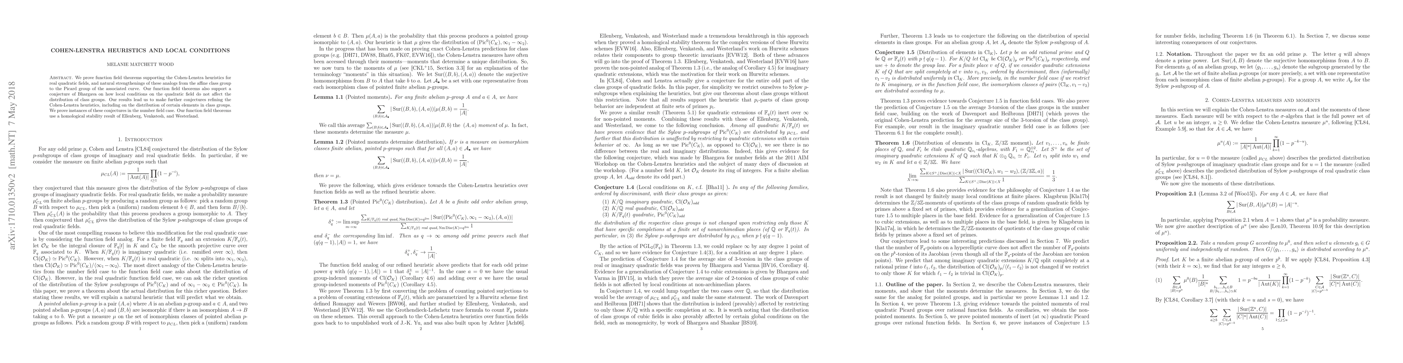 This paper proves function field theorems supporting the Cohen-Lenstra heuristics for real quadratic fields and conjectures that local conditions on the quadratic field do not affect class group distributions. The authors also refine the Cohen-Lenstra heuristics and prove instances of these conjectures in the number field case, utilizing homological stability results.
