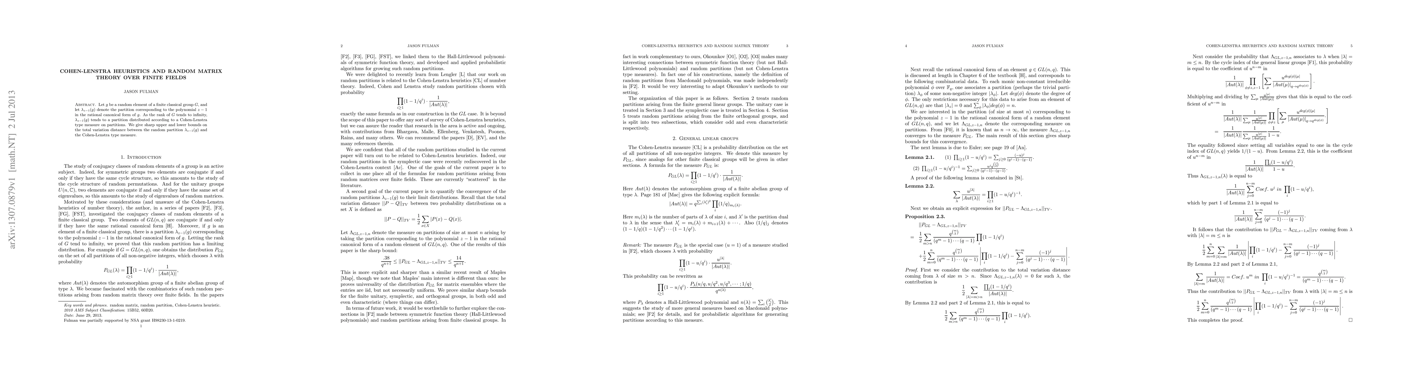 Researchers study how the distribution of partitions in a random classical group G approaches Cohen-Lenstra type measure as its rank increases. They provide bounds on the distance between these distributions.