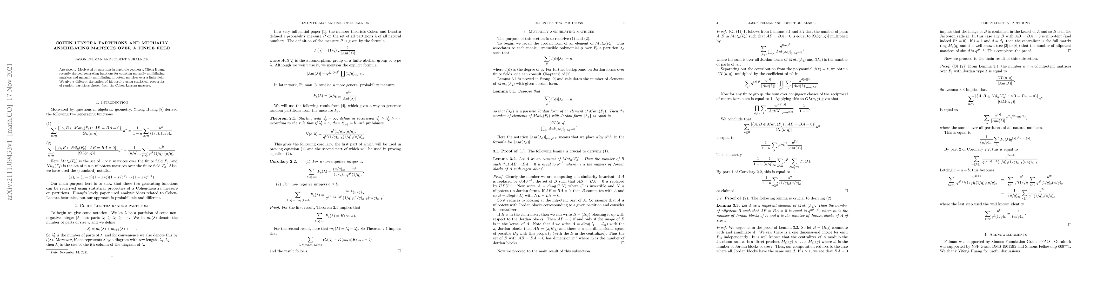 Researchers used statistical properties of random partitions to derive generating functions for counting mutually annihilating matrices and nilpotent matrices over a finite field, following earlier work on the Cohen-Lenstra measure.