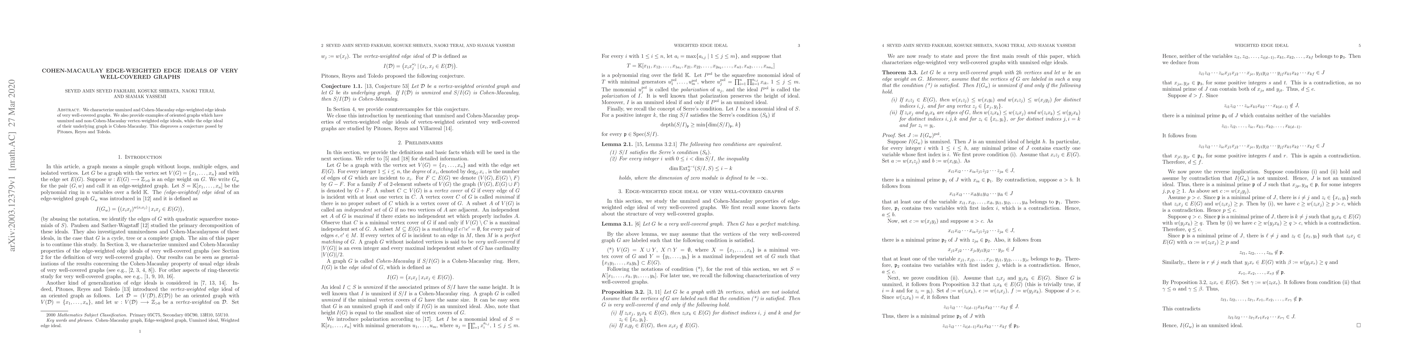 This paper characterizes unmixed and Cohen-Macaulay edge-weighted edge ideals of very well-covered graphs and disproves a conjecture by Pitones, Reyes, and Toledo regarding the Cohen-Macaulay property of vertex-weighted edge ideals in oriented graphs.