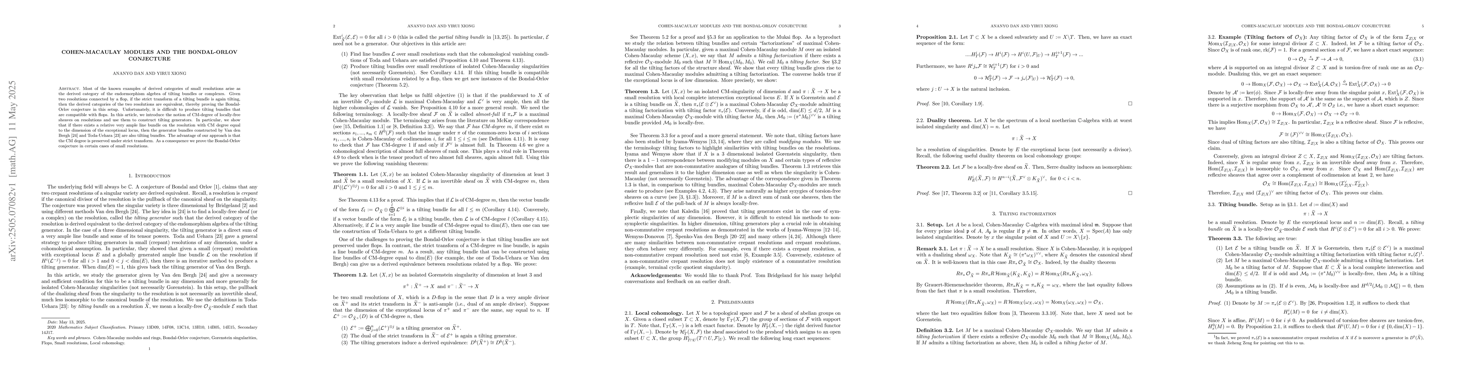 Most of the known examples of derived categories of small resolutions arise as the derived category of the endormorphism algebra of tilting bundles or complexes. Given two resolutions connected by a flop, if the strict transform of a tilting bundle is again tilting, then the derived categories of the two resolutions are equivalent, thereby proving the Bondal-Orlov conjecture in this setup. Unfortunately, it is difficult to produce tilting bundles that are compatible with flops. In this article, we introduce the notion of CM-degree of locally-free sheaves on resolutions and use them to construct tilting generators. In particular, we show that if there exists a relative very ample line bundle on the resolution with CM degree equal to the dimension of the exceptional locus, then the generator bundles constructed by Van den Bergh and Toda-Uehara are also tilting bundles. The advantage of our approach is that the CM degree is preserved under strict transform. As a consequence we prove the Bondal-Orlov conjecture in certain cases of small resolutions.