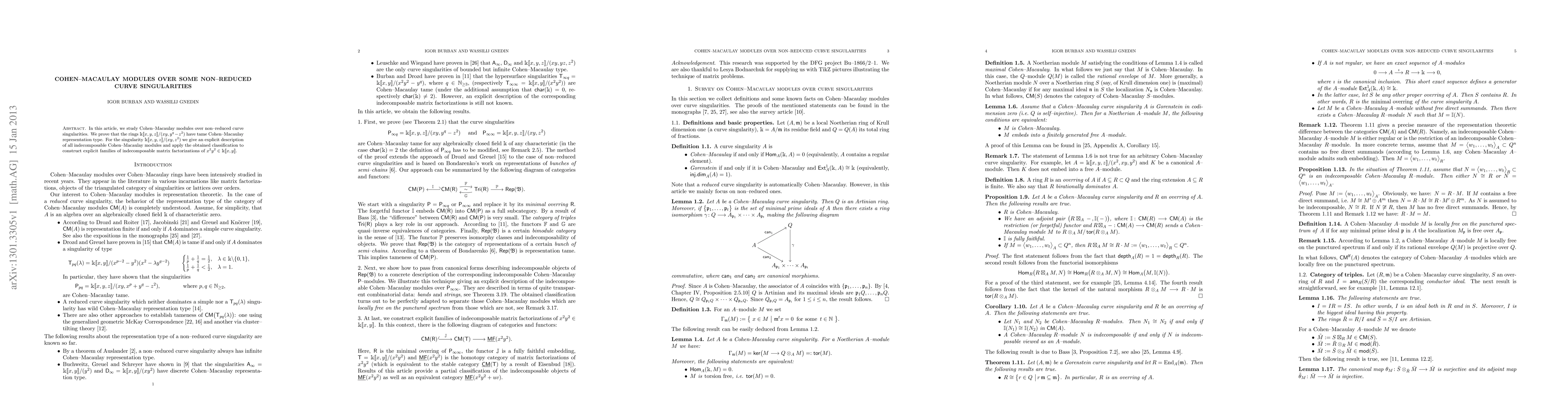 In this article, we study Cohen-Macaulay modules over non-reduced curve singularities. We prove that the rings $k[[x,y,z]]/(xy, y^q -z^2)$ have tame Cohen-Macaulay representation type. For the singularity $k[[x,y,z]]/(xy, z^2)$ we give an explicit description of all indecomposable Cohen--Macaulay modules and apply the obtained classification to construct explicit families of indecomposable matrix factorizations of $(xy)^2 \in k[[x,y]]$.