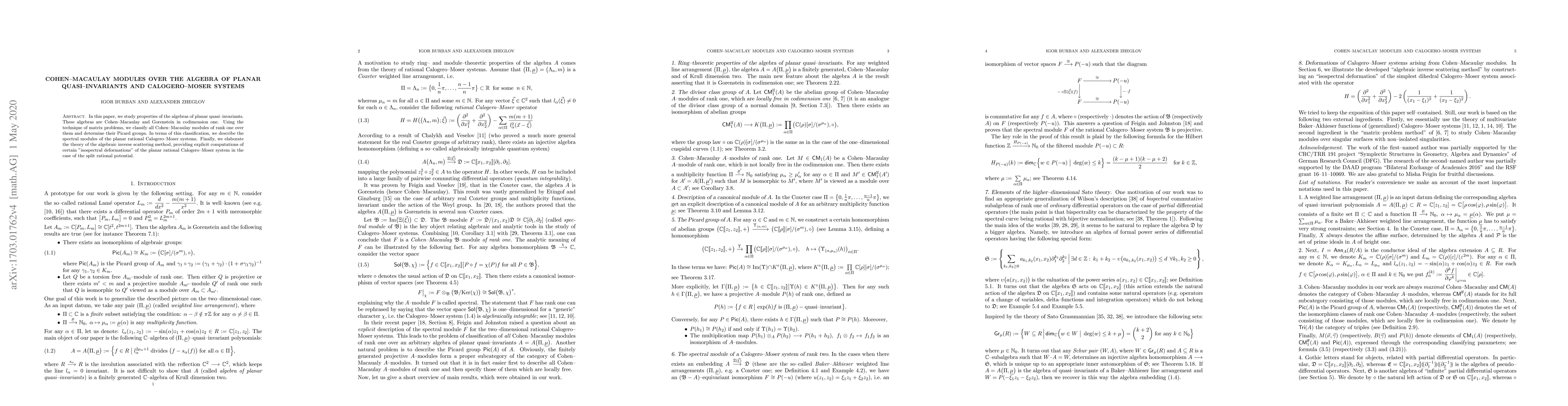 Researchers classify Cohen-Macaulay modules over planar quasi-invariant algebras and use this classification to describe the spectral modules of Calogero-Moser systems, revealing a new deformed example.