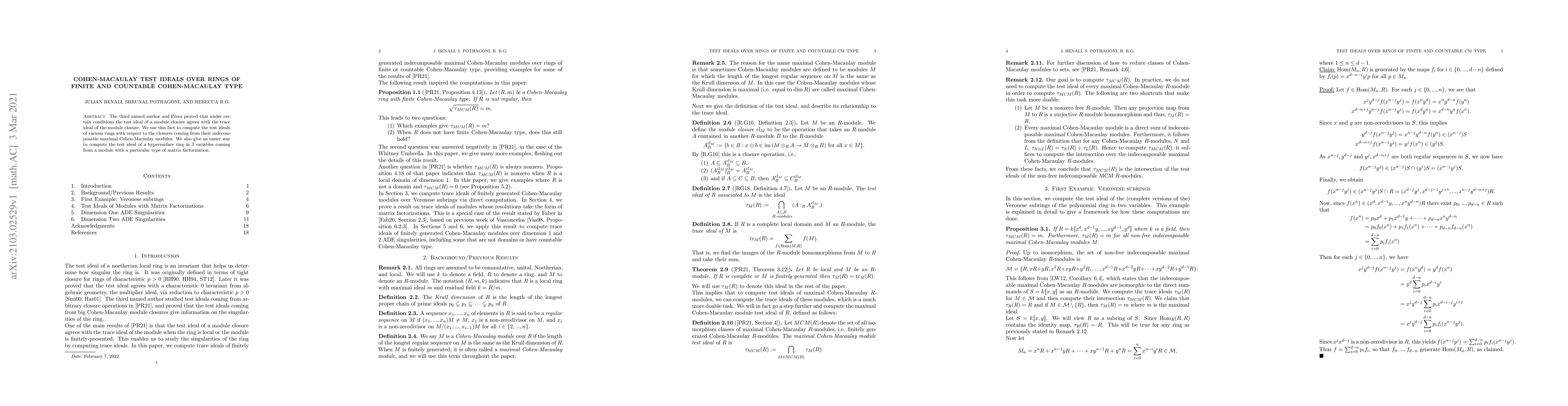 Researchers compute test ideals for modules with specific properties, providing a new method for analyzing Cohen-Macaulay type rings and improving computation of test ideals in certain cases.