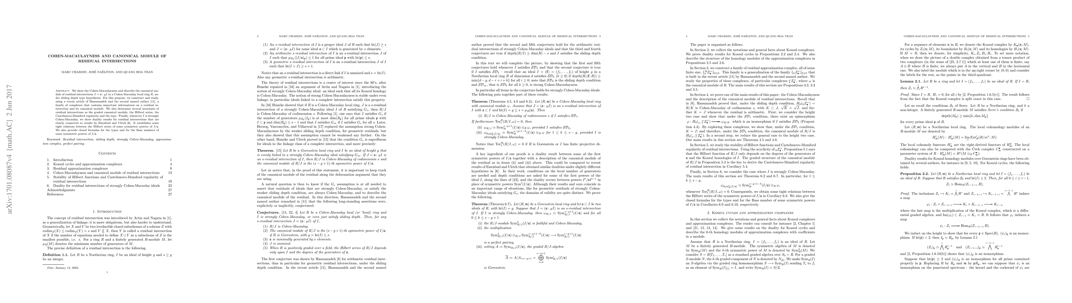 We show the Cohen-Macaulayness and describe the canonical module of residual intersections $J=\mathfrak{a}\colon_R I$ in a Cohen-Macaulay local ring $R$, under sliding depth type hypotheses. For this purpose, we construct and study, using a recent article of Hassanzadeh and the second named author, a family of complexes that contains important informations on a residual intersection and its canonical module. We also determine several invariants of residual intersections as the graded canonical module, the Hilbert series, the Castelnuovo-Mumford regularity and the type. Finally, whenever $I$ is strongly Cohen-Macaulay, we show duality results for residual intersections that are closely connected to results by Eisenbud and Ulrich. It establishes some tight relations between the Hilbert series of some symmetric powers of $I/\mathfrak{a}$. We also provide closed formulas for the types and for the Bass numbers of some symmetric powers of $I/\mathfrak{a}.$