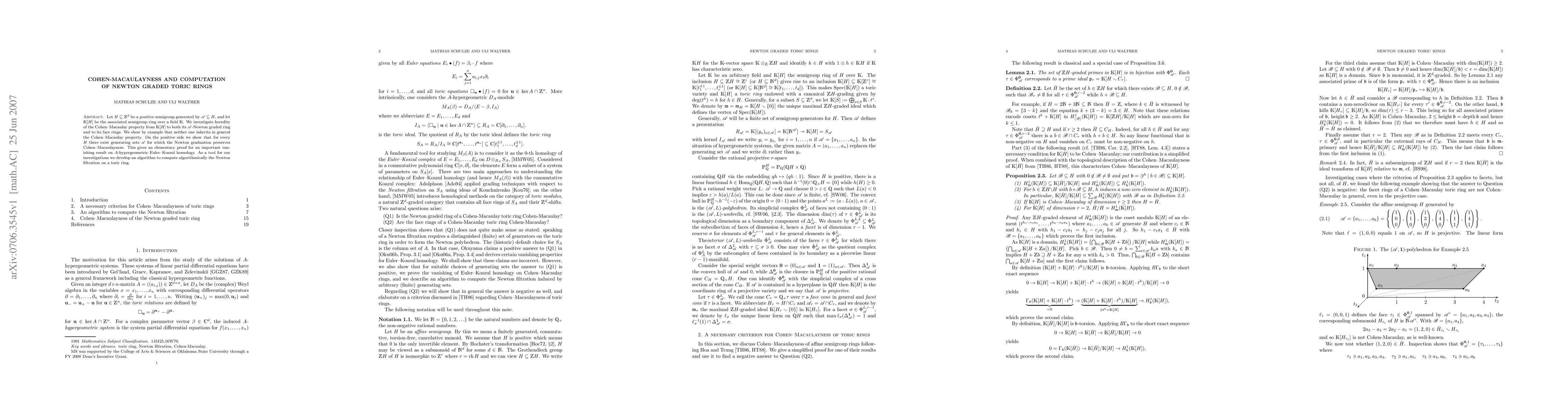 This paper explores the inheritance of the Cohen-Macaulay property in Newton graded toric rings and face rings, demonstrating that neither generally inherits this property. It also presents an algorithm for computing the Newton filtration on toric rings and proves that certain generating sets preserve Cohen-Macaulayness.