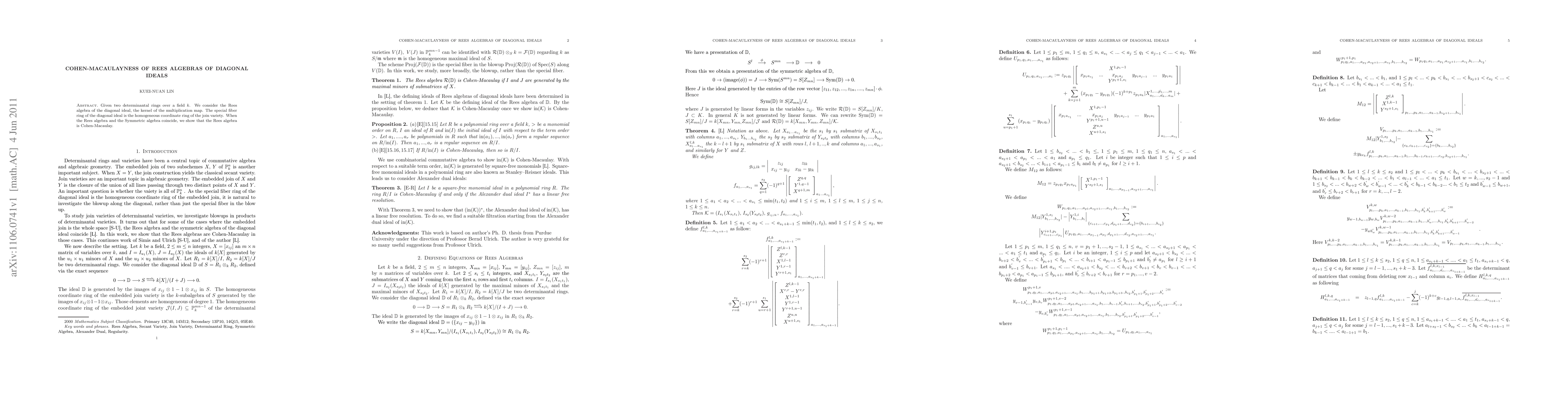 The Rees algebra of diagonal ideals is Cohen-Macaulay when the Symmetric algebra coincides with it, indicating a connection between determinantal rings and their geometric properties.