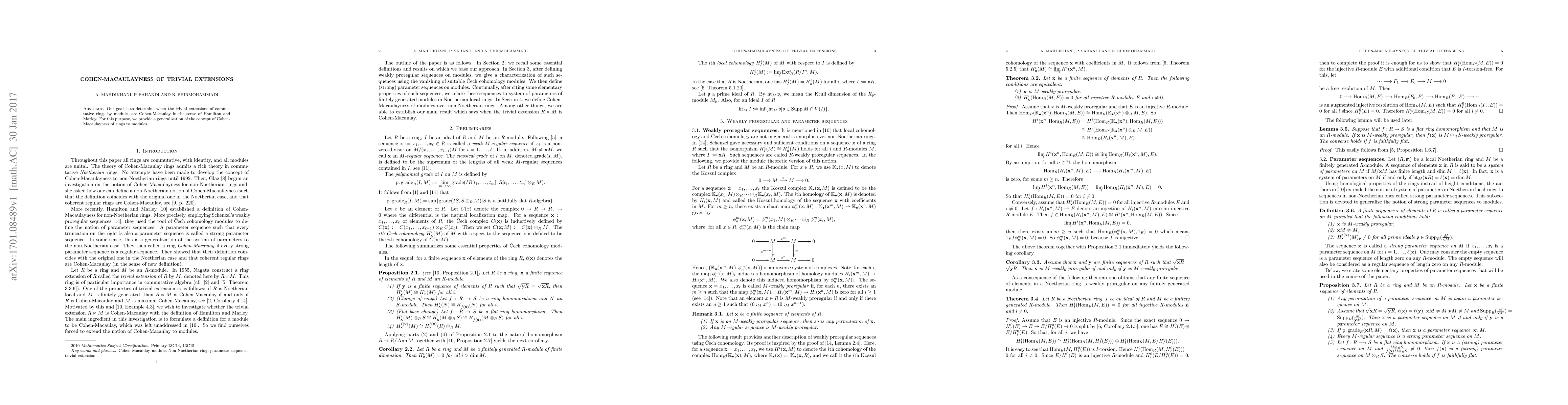 This paper investigates conditions under which trivial extensions of commutative rings by modules are Cohen-Macaulay, generalizing the concept of Cohen-Macaulayness from rings to modules. The authors aim to establish criteria for this property in the context of module theory.