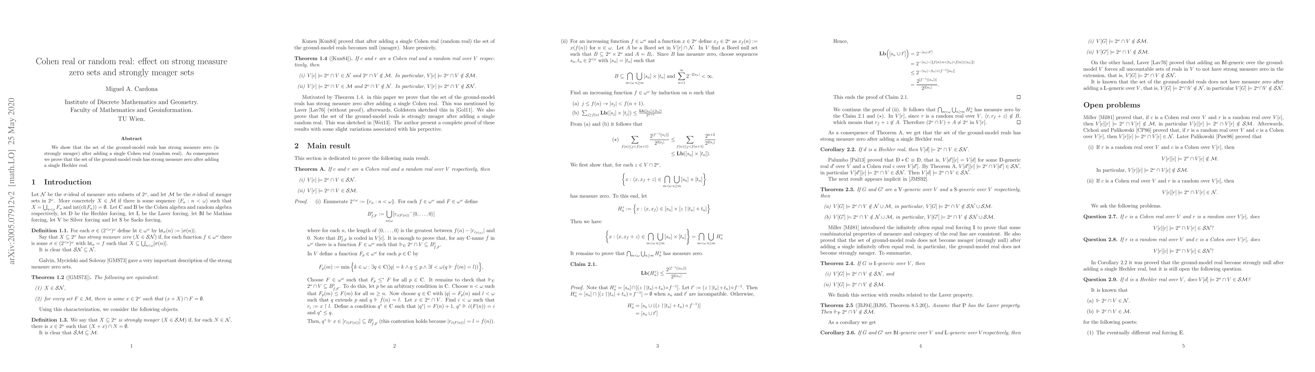 We show that the set of the ground-model reals has strong measure zero (is strongly meager) after adding a single Cohen real (random real). As consequence we prove that the set of the ground-model reals has strong measure zero after adding a single Hechler real.