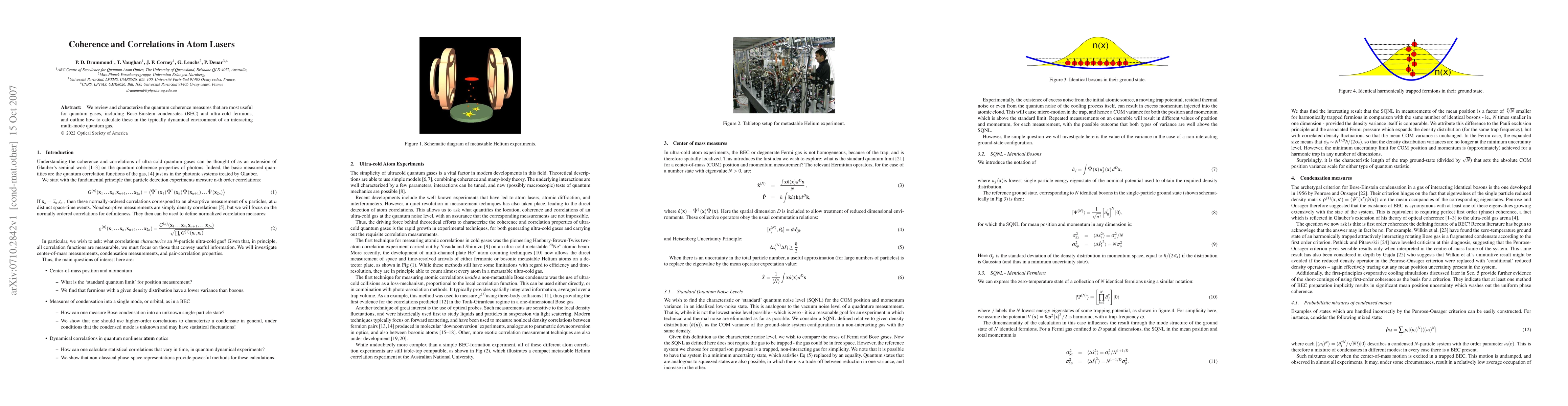 This paper reviews quantum coherence measures for quantum gases like Bose-Einstein condensates and ultra-cold fermions, and provides methods for calculating these measures in the dynamic environment of an interacting multi-mode quantum gas.