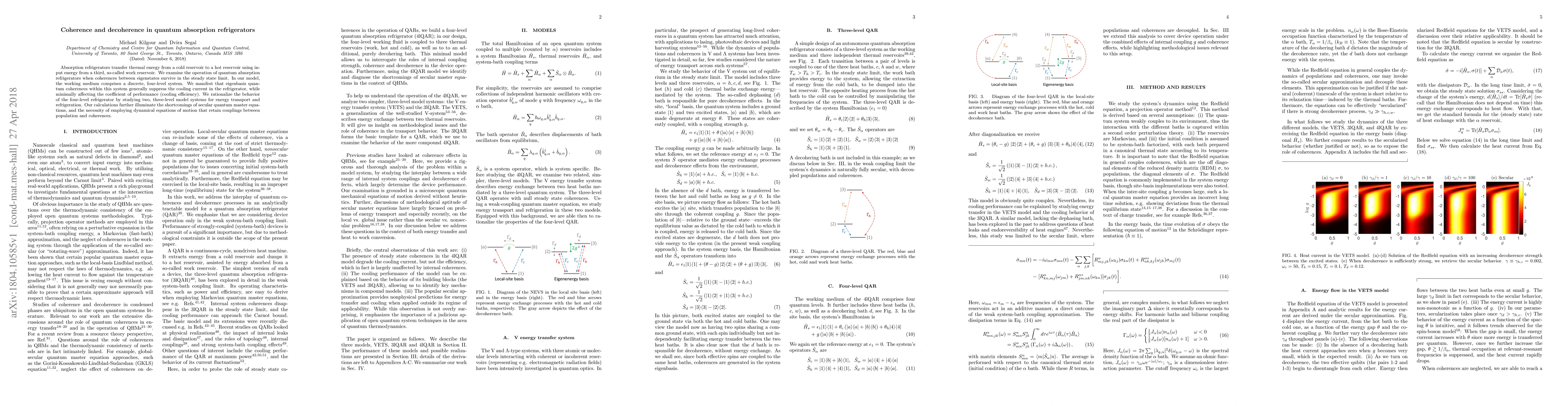 This paper investigates quantum absorption refrigerators using a four-level system, finding that eigenbasis quantum coherences generally reduce cooling current but minimally affect efficiency. It highlights the limitations of secular quantum master equations and advocates for dynamical equations that preserve population-coherence couplings.