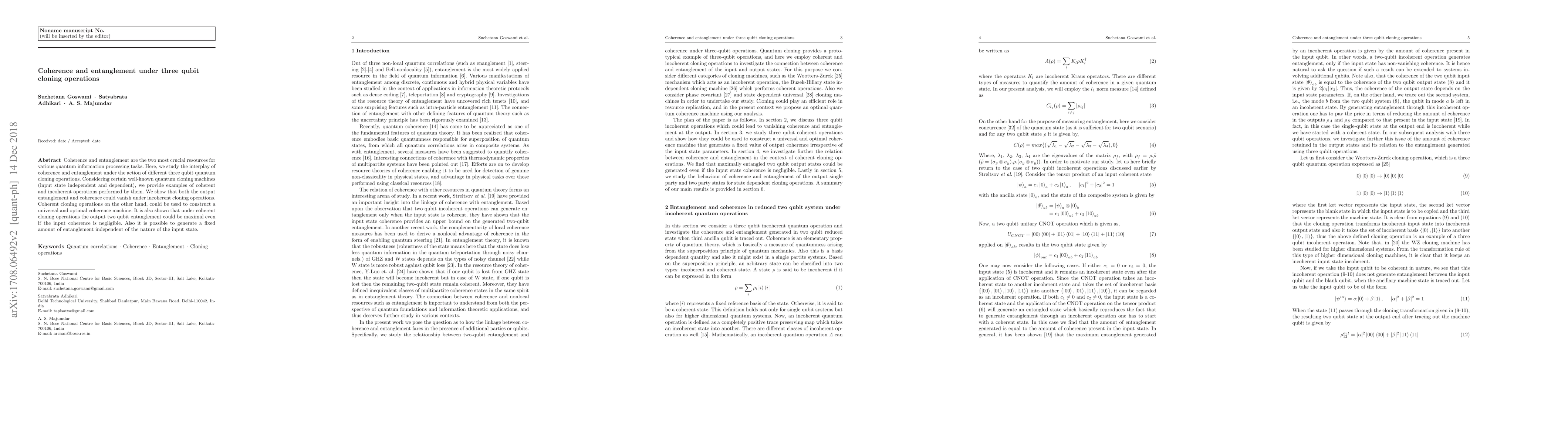 This paper examines how coherence and entanglement behave under three-qubit cloning operations, distinguishing between coherent and incoherent cloning processes. It finds that incoherent cloning can diminish both output entanglement and coherence, while coherent cloning can produce maximal two-qubit entanglement from minimal input coherence and create universal optimal coherence machines.