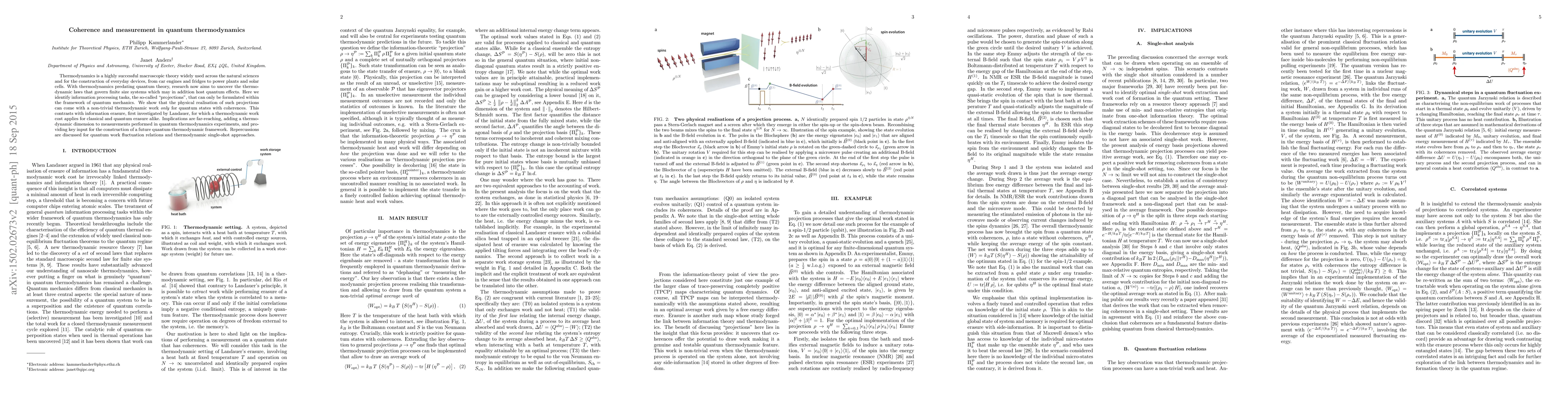 This research is significant as it adds a thermodynamic dimension to measurements in quantum thermodynamics experiments, distinguishing quantum projections from classical information erasure, and offering insights into the fundamental connection between quantum coherence and thermodynamic work.
