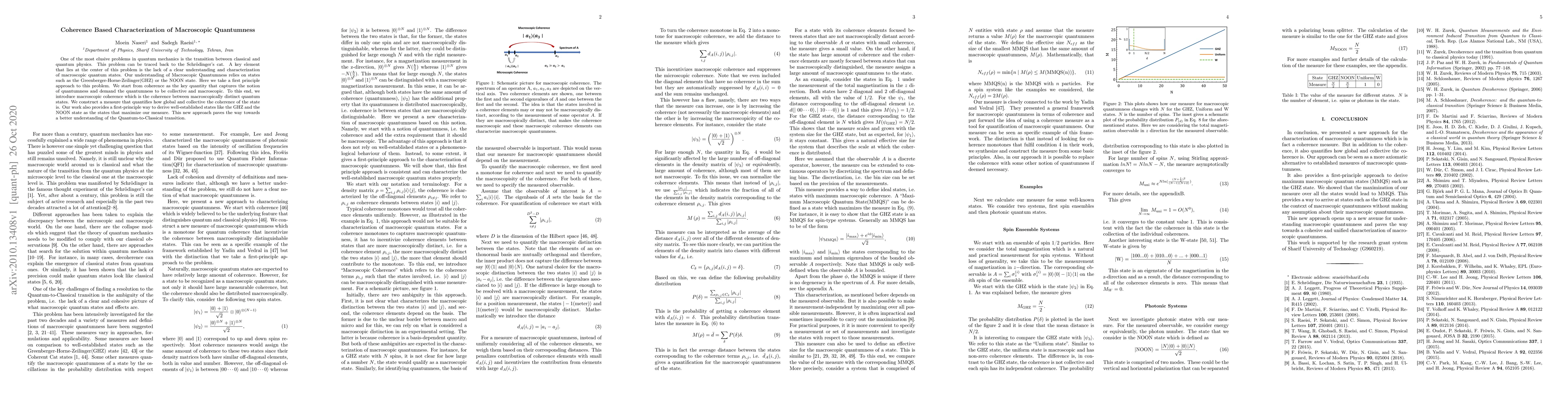 This paper introduces macroscopic coherence as a measure of quantumness, focusing on coherence between macroscopically distinct quantum states. It provides a new method to characterize macroscopic quantum states, revealing GHZ and NOON states as optimal examples, thus advancing the understanding of the quantum-to-classical transition.