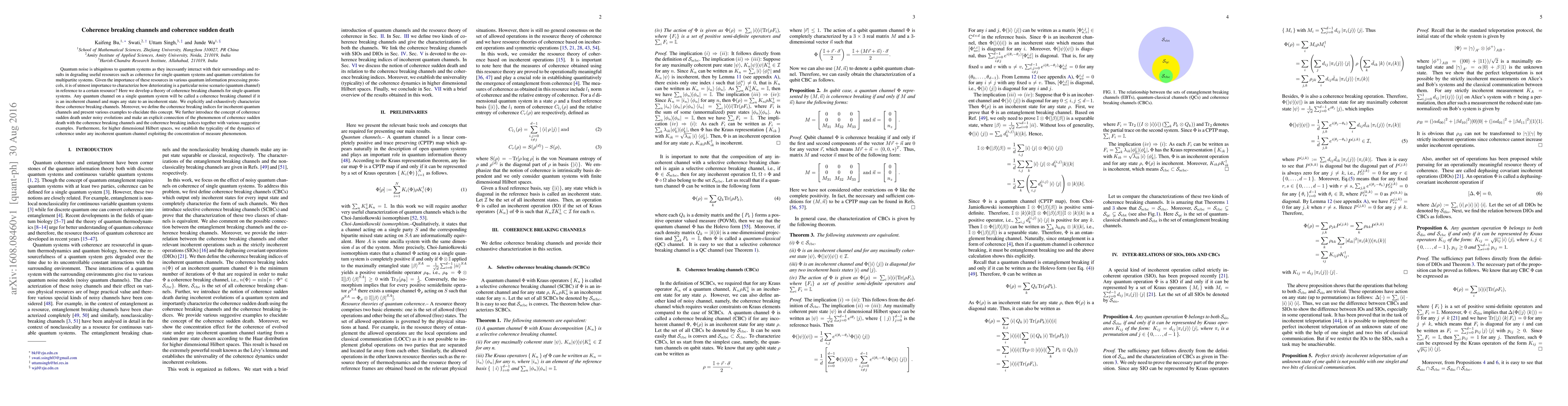 This paper develops a theory of coherence breaking channels that degrade coherence in single quantum systems, characterizes these channels, and introduces coherence breaking indices. It also explores coherence sudden death and connects it to these channels, establishing typicality in dynamics for higher-dimensional systems.