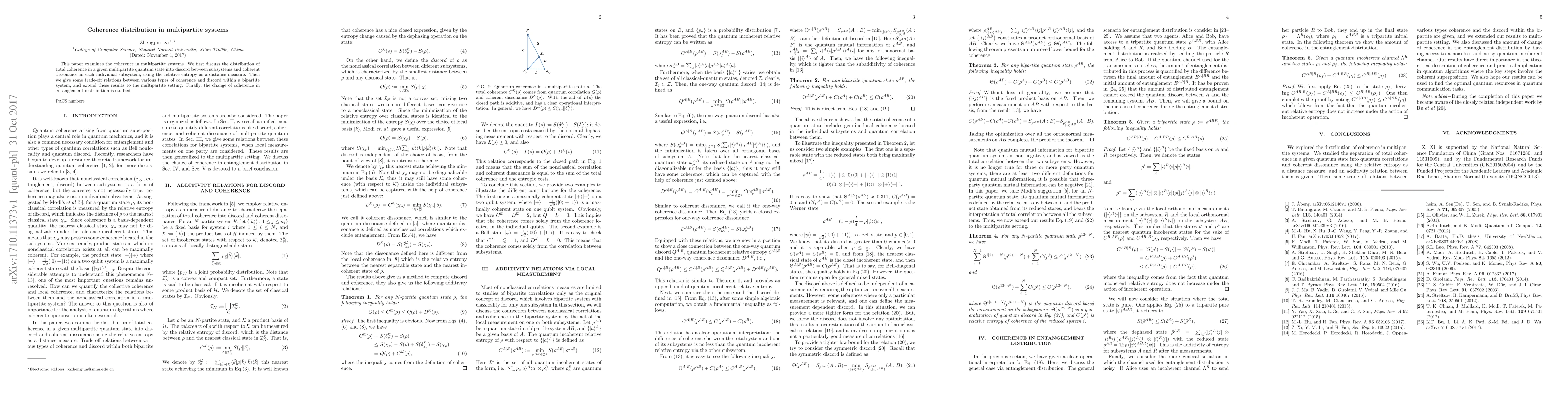This paper examines the coherence in multipartite systems. We first discuss the distribution of total coherence in a given multipartite quantum state into discord between subsystems and coherent dissonance in each individual subsystem, using the relative entropy as a distance measure. Then we give some trade-off relations between various types of coherence and discord within a bipartite system,and extend these results to the multipartite setting. Finally, the change of coherence in entanglement distribution is studied.
