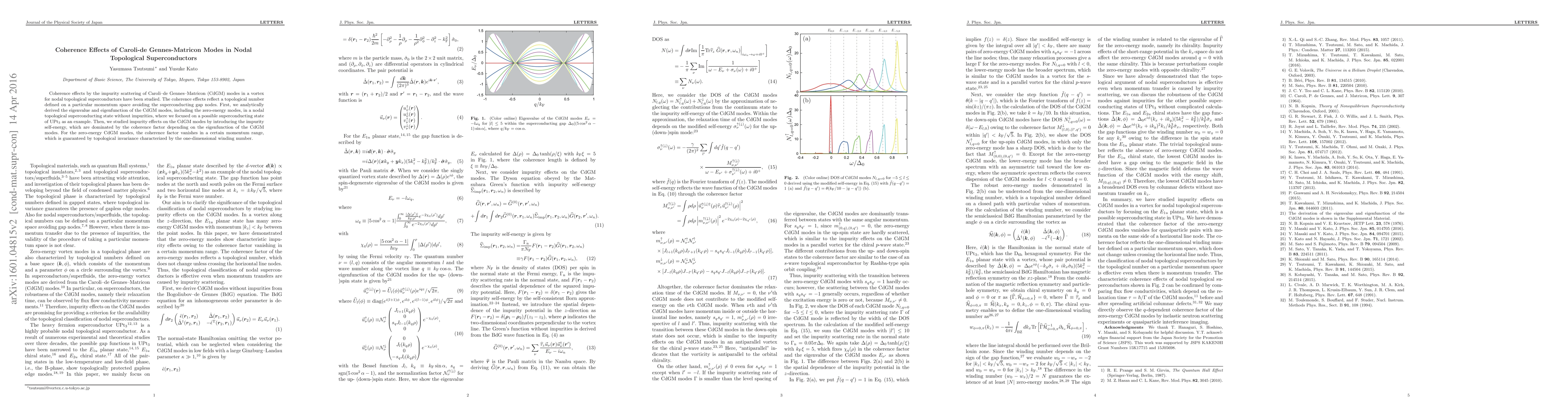 This paper investigates coherence effects due to impurity scattering of Caroli-de Gennes-Matricon modes in nodal topological superconductors, focusing on the topological number defined on momentum space. It analytically derives the eigenvalue and eigenfunction of CdGM modes, highlighting the coherence factor's role in zero-energy modes, and demonstrates topological invariance via the one-dimensional winding number.