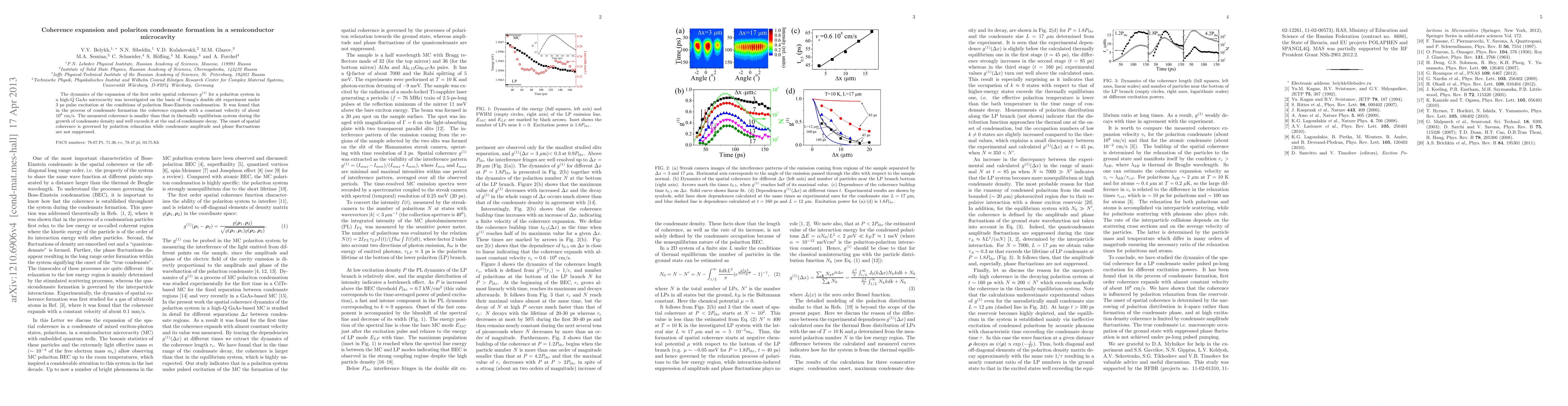 The paper investigates the coherence expansion dynamics in a GaAs microcavity during polariton Bose-Einstein condensation, revealing coherence growth at 10^8 cm/s and contrasting coherence levels between condensed and thermal states. Spatial coherence onset is driven by polariton relaxation, with amplitude and phase fluctuations remaining unaffected.