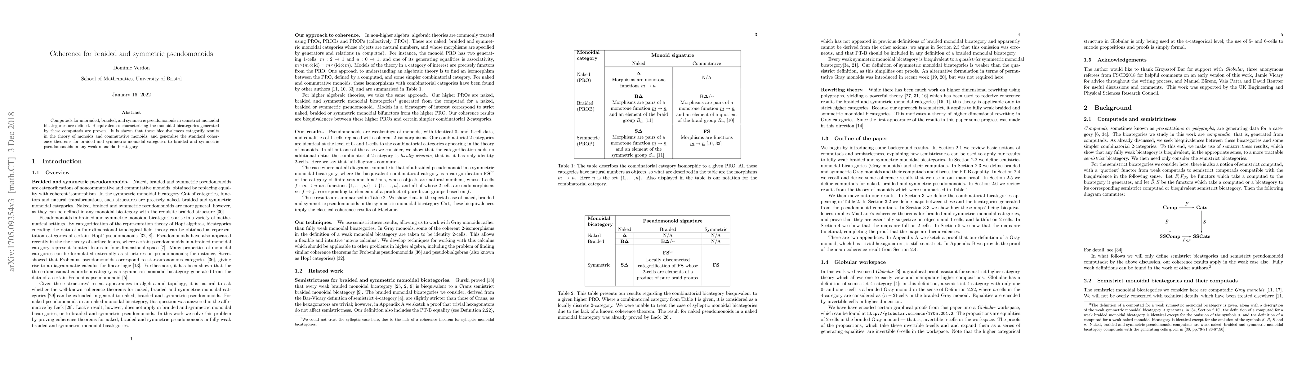 Presentations for unbraided, braided and symmetric pseudomonoids are defined. Biequivalences characterising the semistrict bicategories generated by these presentations are proven. It is shown that these biequivalences categorify results in the theory of monoids and commutative monoids, and generalise standard coherence theorems for braided and symmetric monoidal categories.