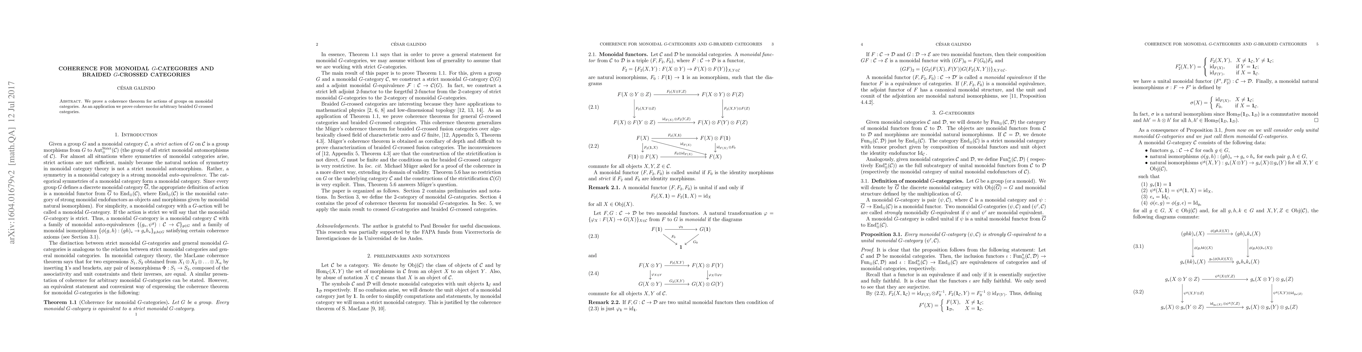 Summary: This paper establishes a coherence theorem for group actions on monoidal categories and applies it to demonstrate coherence for any braided $G$-crossed categories. The result highlights the structural consistency within these categorical frameworks.