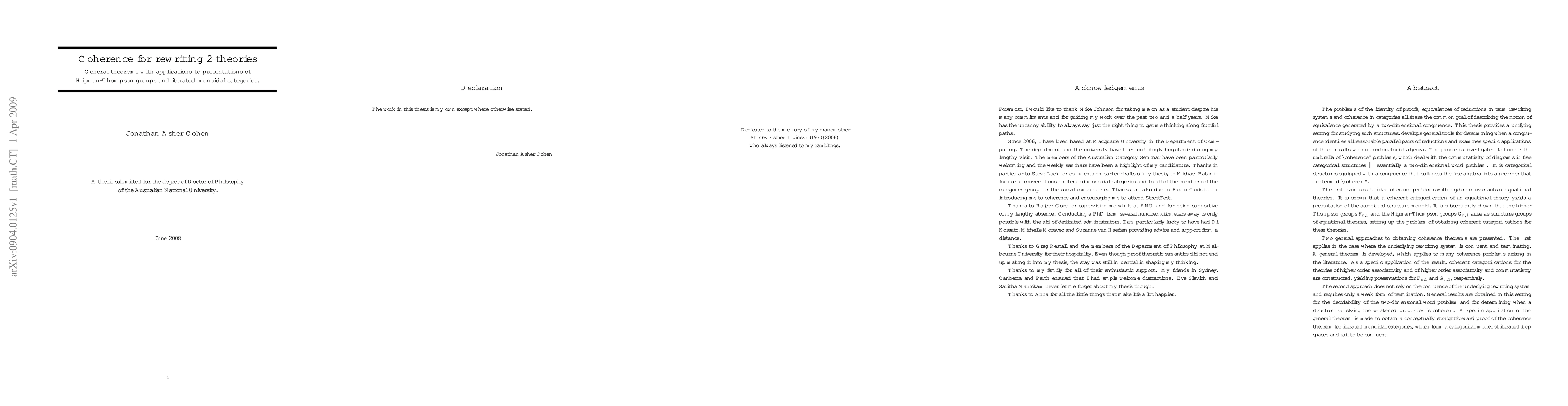 General coherence theorems are constructed that yield explicit presentations of categorical and algebraic objects. The categorical structures involved are finitary discrete Lawvere 2-theories, though they are approached within the language of term rewriting theory. Two general coherence theorems are obtained. The first applies to terminating and confluent rewriting 2-theories. This result is exploited to construct systematic presentations for the higher Thompson groups and the Higman-Thompson groups. The presentations are categorically interesting as they arise from higher-arity analogues of the Stasheff/Mac Lane coherence axioms, which involve phenomena not present in the classical binary axioms. The second general coherence theorem holds for 2-theories that are not necessarily confluent or terminating and is used to construct a new proof of coherence for iterated monoidal categories, which arise as categorical models of iterated loop spaces and fail to be confluent.