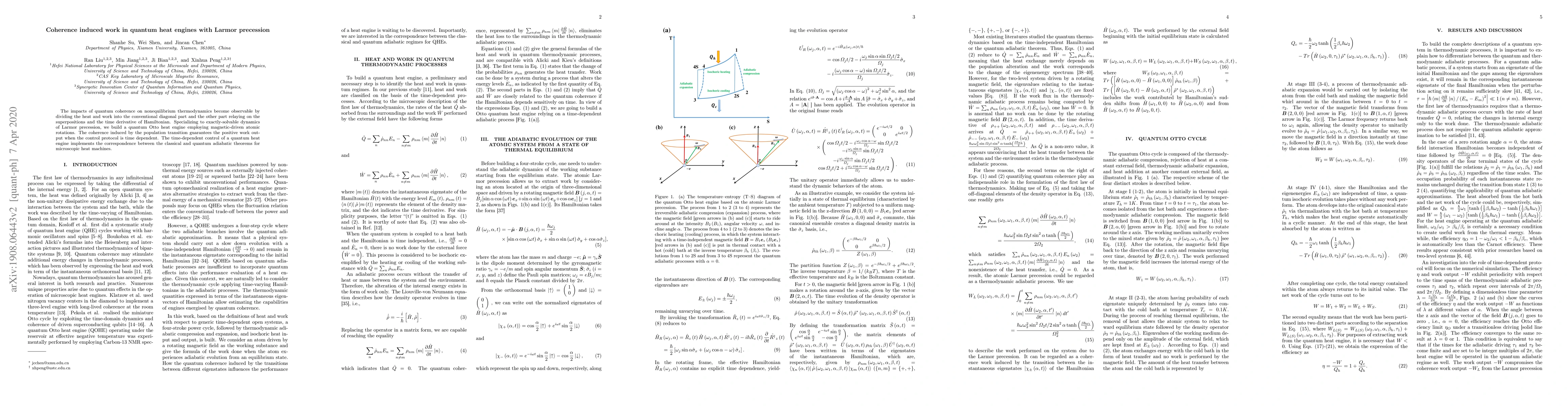 This paper investigates the role of quantum coherence in quantum heat engines, specifically focusing on Larmor precession dynamics. It demonstrates that coherence can lead to positive work output in quantum Otto engines when the control protocol varies over time, establishing a link between classical and quantum adiabatic theorems.