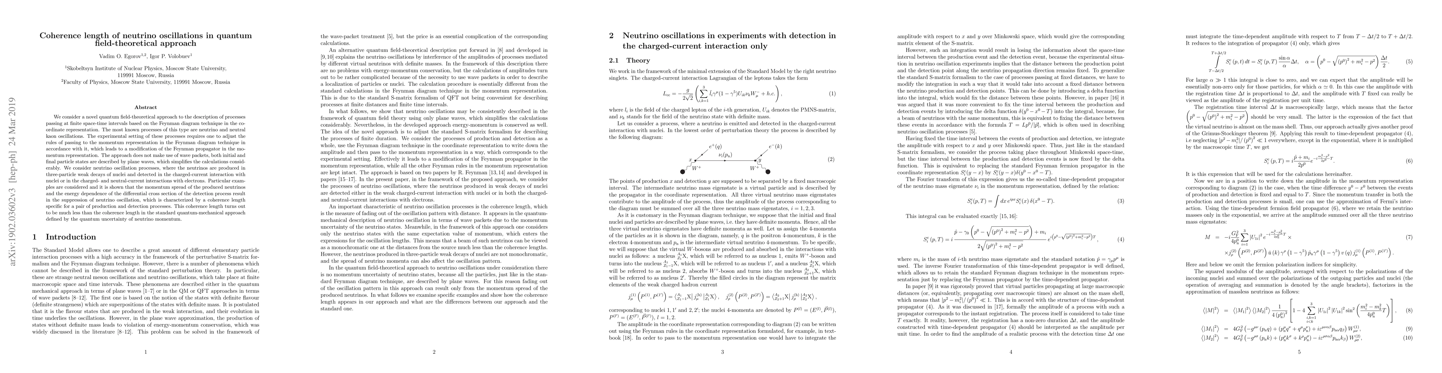 This paper proposes a quantum field-theoretical approach to neutrino oscillations using Feynman diagrams in the coordinate representation, avoiding wave packets and simplifying calculations. It finds that the coherence length for these oscillations is significantly shorter than that predicted by the standard quantum-mechanical approach, due to the momentum spread and energy dependence of the detection process.