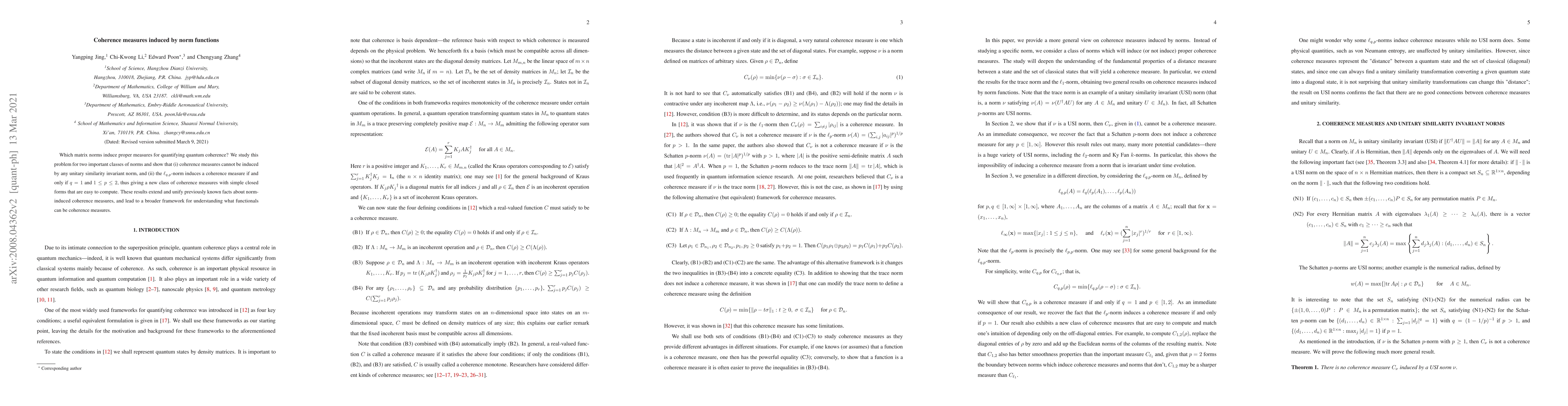 This paper explores which matrix norms can induce measures for quantifying quantum coherence, finding that unitary similarity invariant norms cannot, while $\ell_{q,p}$-norms induce coherence measures only when $q=1$ and $1 \leq p \leq 2,$ providing a new class of simple, computable coherence measures.