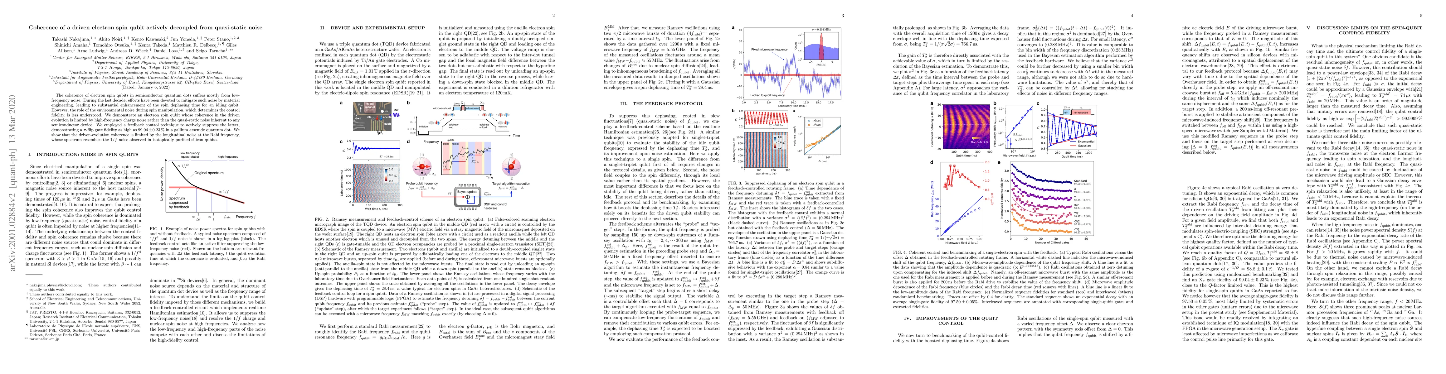 This paper investigates the coherence of an electron spin qubit in a semiconductor quantum dot, focusing on how high-frequency charge noise affects qubit performance during manipulation. The authors employ feedback control to actively suppress quasi-static noise, achieving a $\pi$-flip gate fidelity of $99.04\pm 0.23\,\%$.