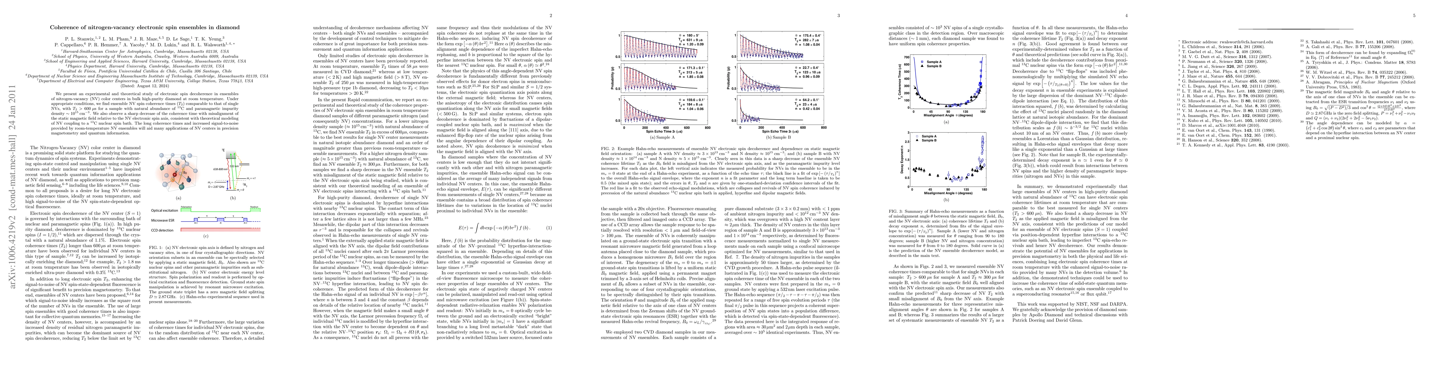The paper presents an experimental and theoretical study of electronic spin decoherence in ensembles of nitrogen-vacancy (NV) color centers in bulk high-purity diamond at room temperature, demonstrating long coherence times and increased signal-to-noise ratio.