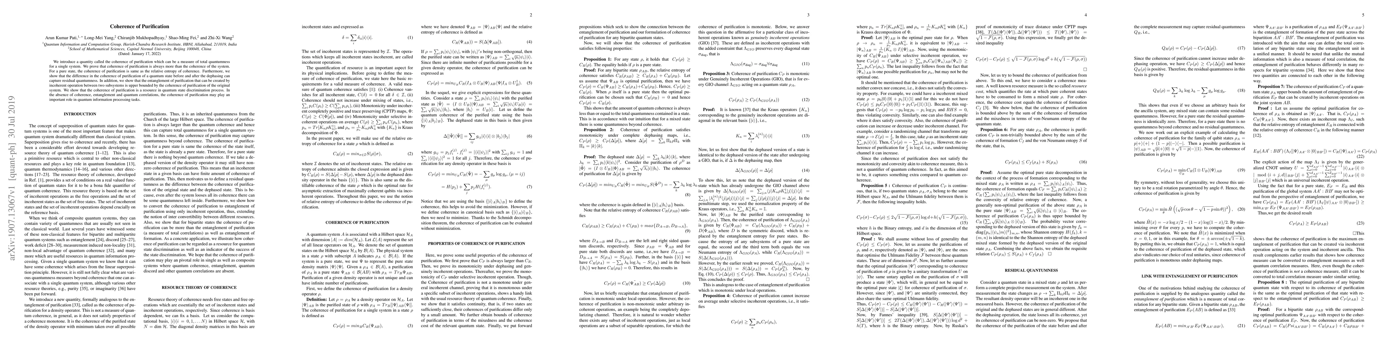 Researchers introduce a measure of total quantumness called coherence of purification, showing it's always greater than system coherence and can detect residual quantumness after dephasing.