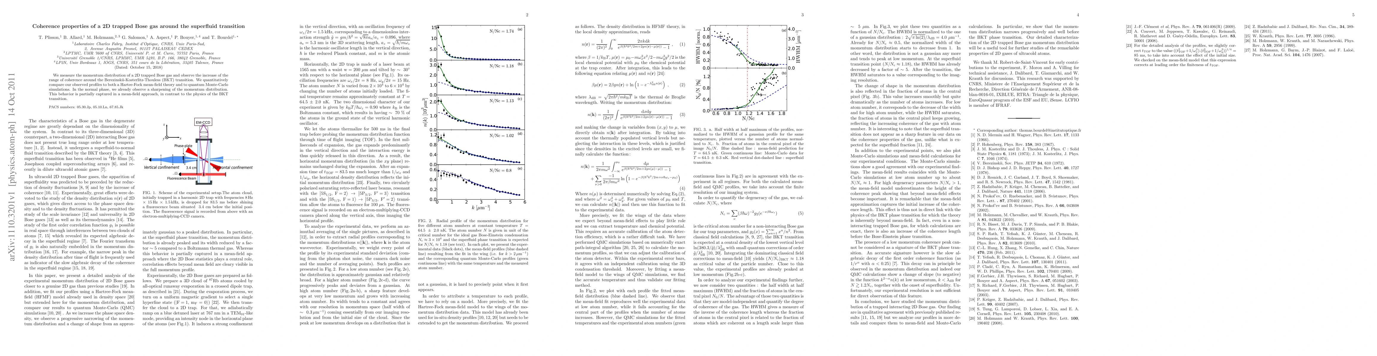 Researchers studied a 2D trapped Bose gas near its superfluid transition point and found an increased range of coherence around this phase change. Their observations were compared to theoretical models, revealing partial agreement in the normal phase but not at the BKT transition.