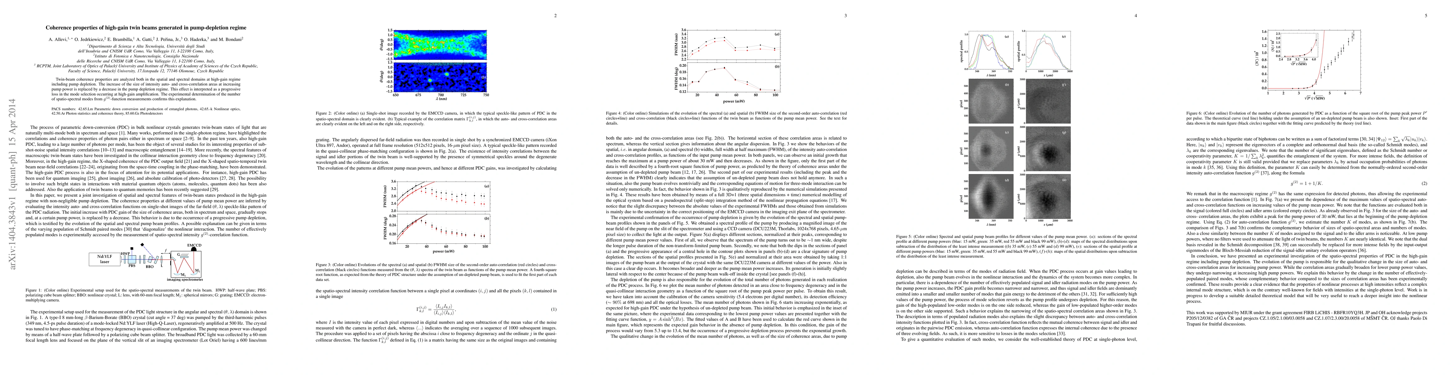 This paper investigates the coherence properties of high-gain twin beams under pump-depletion conditions, revealing a shift from increased to decreased correlation areas with higher pump power, attributed to mode selection loss. Experimental results using $g^{(2)}$-function measurements confirm the progressive loss of mode selection.
