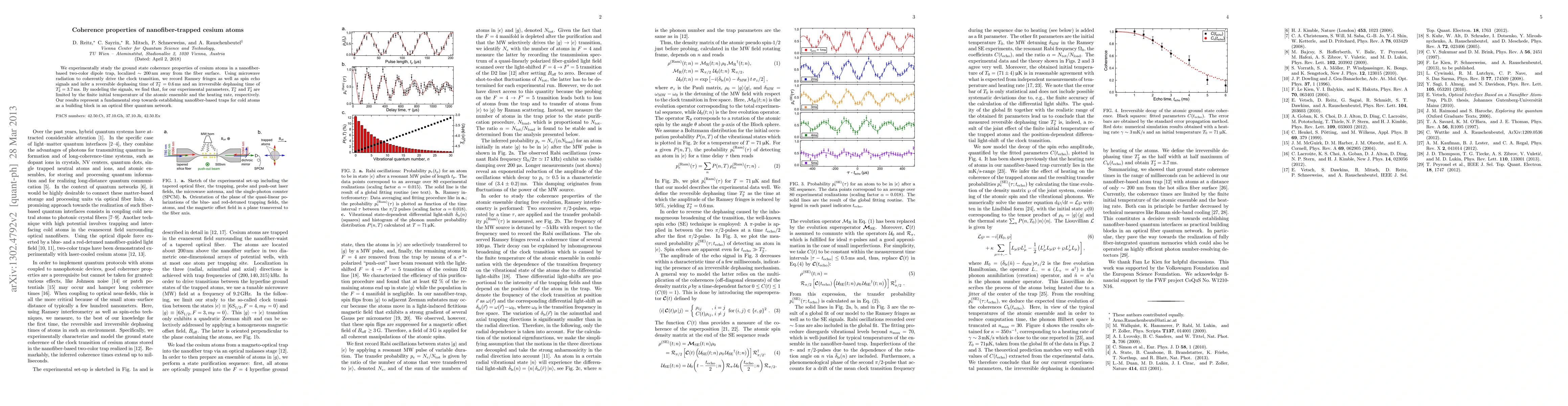 This paper investigates the coherence properties of cesium atoms trapped in a nanofiber-based dipole trap, measuring reversible and irreversible dephasing times. The study finds $T_2^\ast=0.6$ ms and $T_2^\prime=3.7$ ms, attributing these values to initial temperature and heating rate, respectively, and suggests potential for nanofiber traps in optical fiber quantum networks.