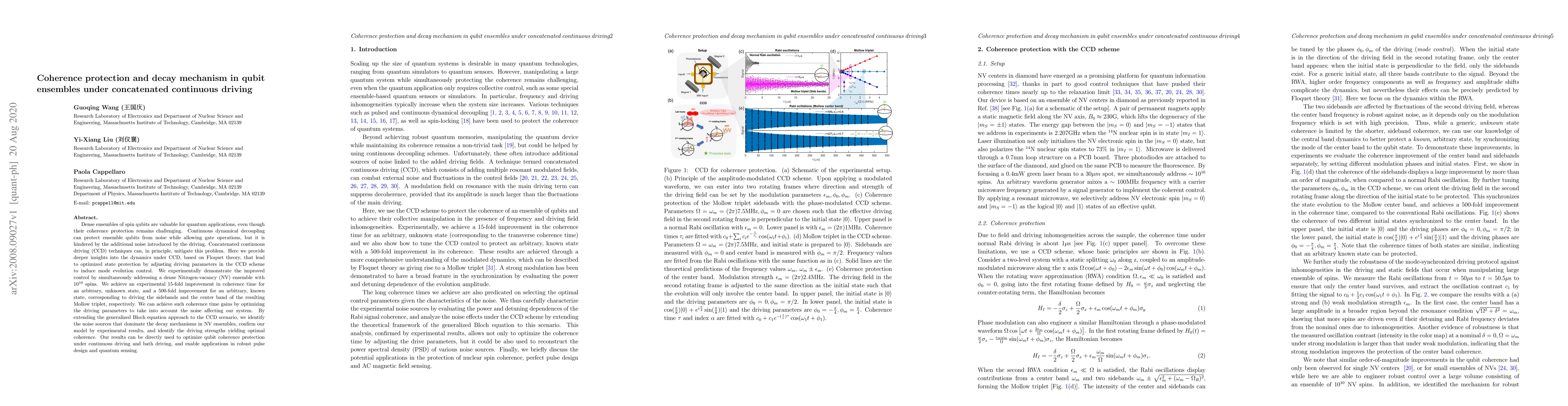 This paper investigates coherence protection in dense qubit ensembles using concatenated continuous driving (CCD) techniques, leveraging Floquet theory to optimize driving parameters. The study demonstrates a significant improvement in coherence time for both arbitrary known and unknown states in a dense Nitrogen-vacancy ensemble, identifying and mitigating noise sources to enhance qubit stability for quantum applications.