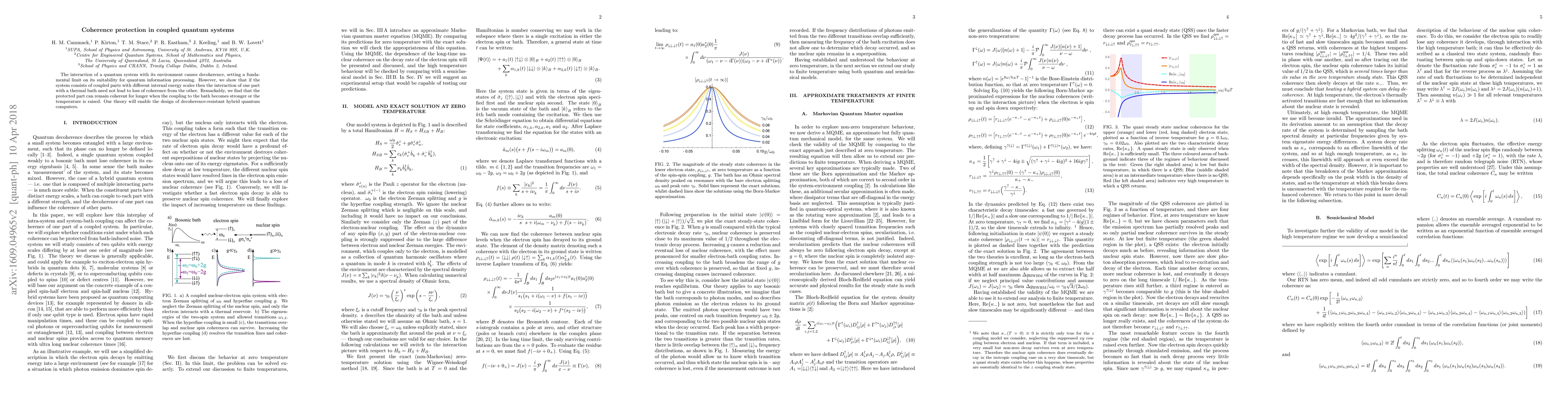 This paper demonstrates that coherence in coupled quantum systems can be protected from environmental decoherence when the system has different internal energy scales. Surprisingly, the protected part can even gain coherence as coupling to the bath increases or temperature rises, enabling the design of robust hybrid quantum computers.