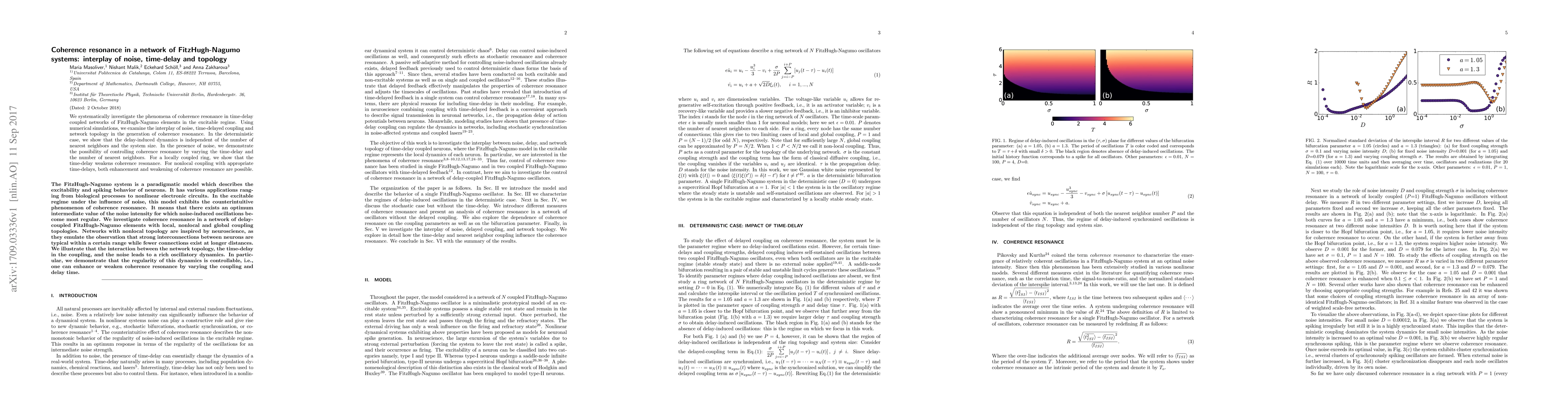 This paper investigates coherence resonance in networks of FitzHugh-Nagumo systems, exploring how noise, time-delay coupling, and network topology influence this phenomenon. The study reveals that while delay-induced dynamics are independent of network size in deterministic cases, noise allows for control over coherence resonance through time-delay and connectivity adjustments.