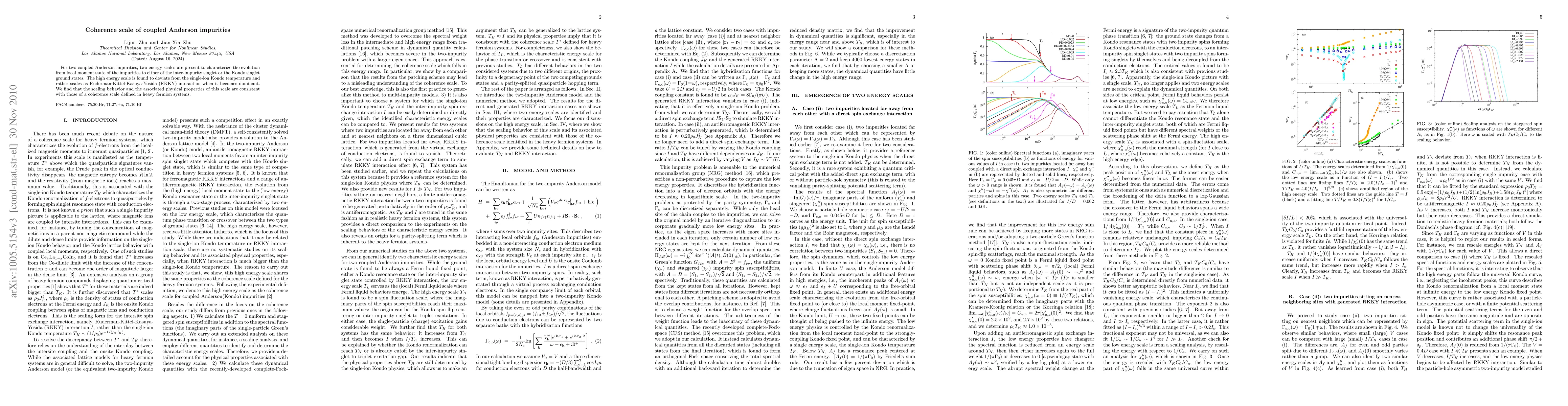 Researchers studied two coupled Anderson impurities, finding a new energy scale that scales with Ruderman-Kittel-Kasuya-Yosida (RKKY) interaction, consistent with heavy fermion systems.