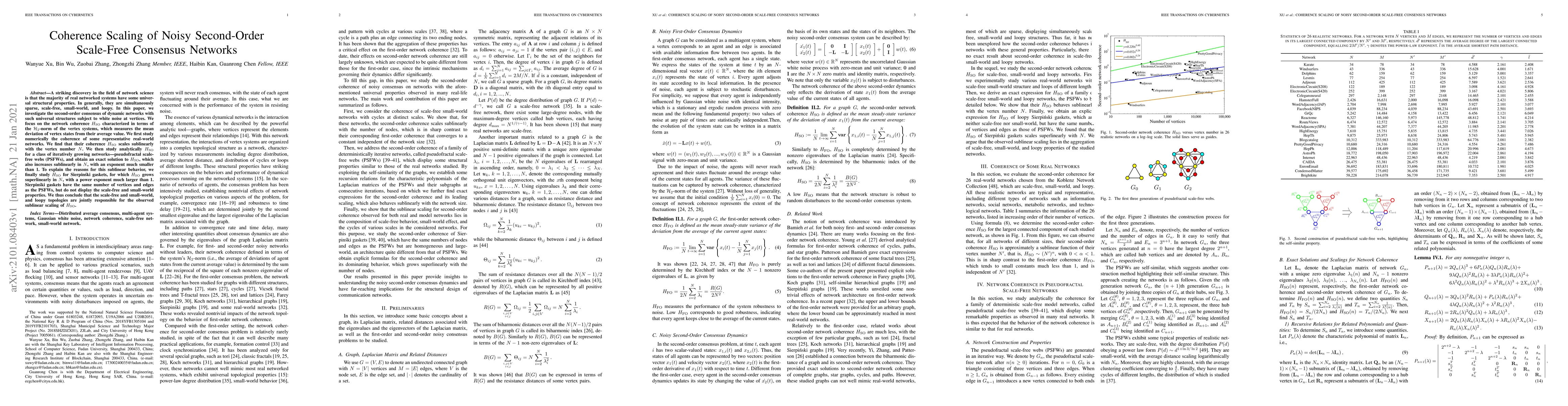 Researchers studied how noisy networks with scale-free and small-world structures behave, finding that their coherence scales sublinearly with the number of vertices, a result linked to these topologies.