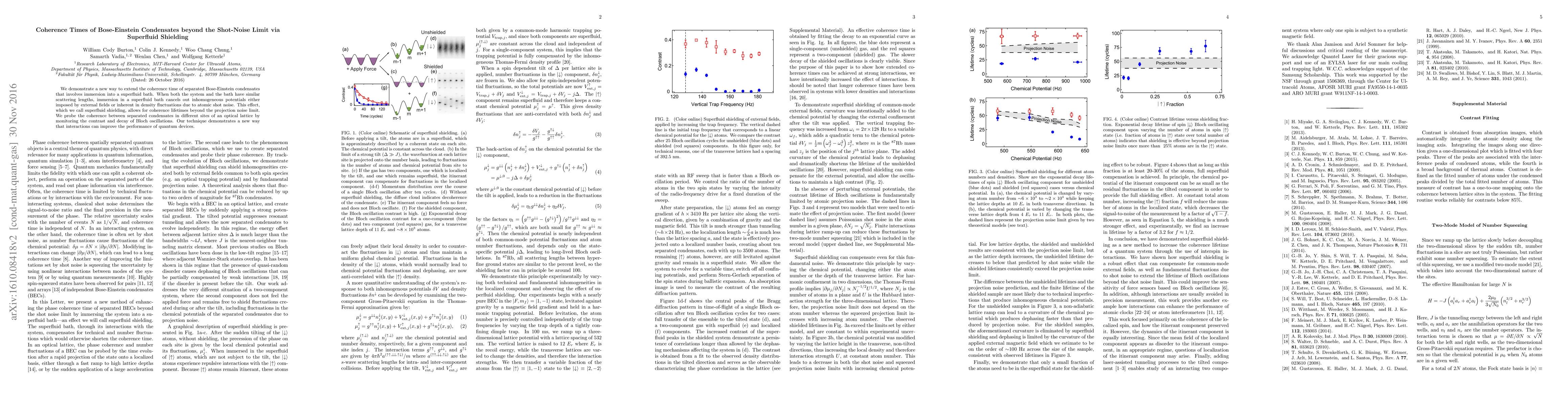 We demonstrate a new way to extend the coherence time of separated Bose-Einstein condensates that involves immersion into a superfluid bath. When both the system and the bath have similar scattering lengths, immersion in a superfluid bath cancels out inhomogeneous potentials either imposed by external fields or inherent in density fluctuations due to atomic shot noise. This effect, which we call superfluid shielding, allows for coherence lifetimes beyond the projection noise limit. We probe the coherence between separated condensates in different sites of an optical lattice by monitoring the contrast and decay of Bloch oscillations. Our technique demonstrates a new way that interactions can improve the performance of quantum devices.