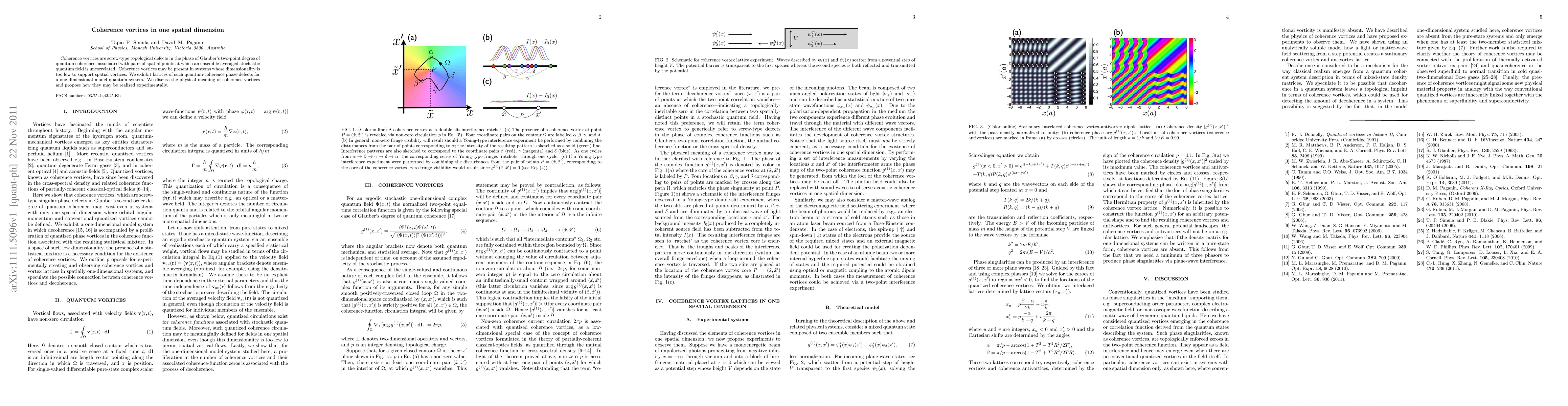 Researchers discovered coherence vortices in one-dimensional systems, which are topological defects in quantum coherence that may not require spatial dimensions to form. They proposed a way to realize these defects experimentally.