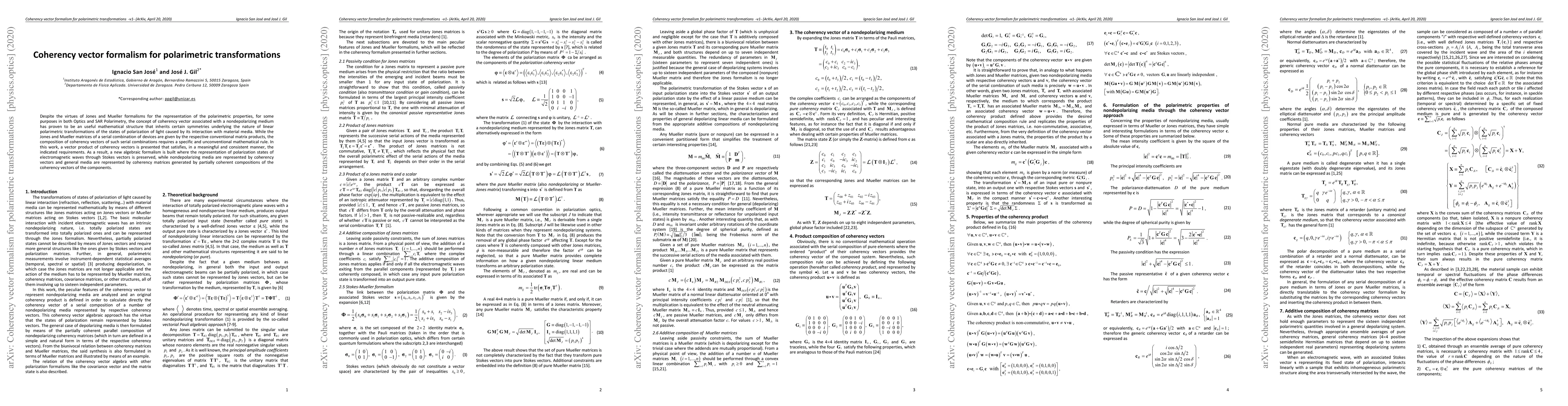 This paper introduces a coherency vector formalism for representing polarimetric transformations, offering a new algebraic structure that preserves polarization states through Stokes vectors while representing nondepolarizing media using coherency vectors and general media with coherency matrices. The proposed vector product of coherency vectors provides a consistent method for combining serial combinations of devices.