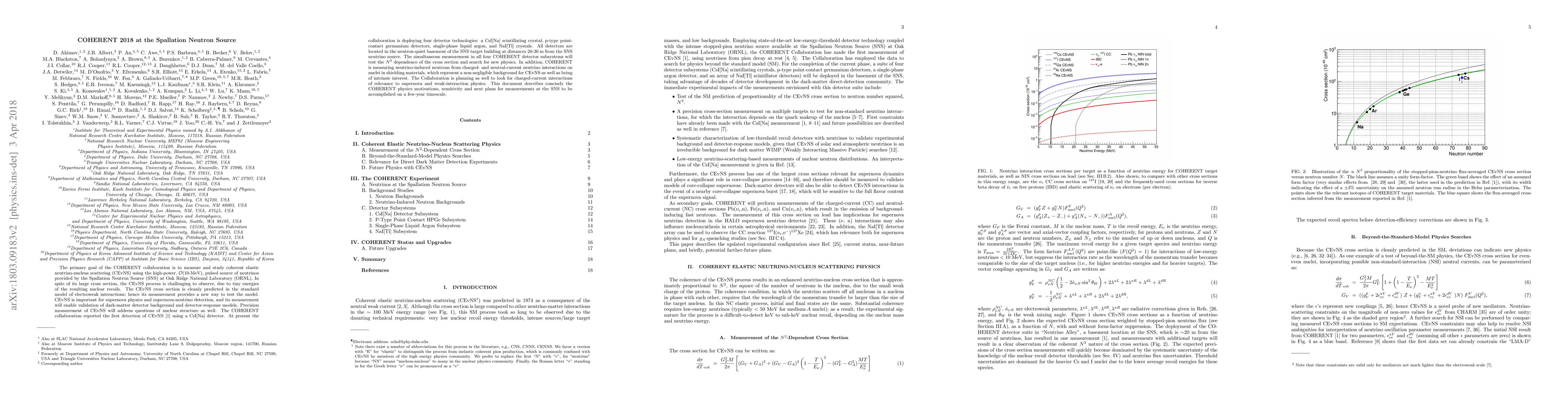 The primary goal of the COHERENT collaboration is to measure and study coherent elastic neutrino-nucleus scattering (CEvNS) using the high-power, few-tens-of-MeV, pulsed source of neutrinos provided by the Spallation Neutron Source (SNS) at Oak Ridge National Laboratory (ORNL). The COHERENT collaboration reported the first detection of CEvNS [Akimov:2017ade] using a CsI[Na] detector. At present the collaboration is deploying four detector technologies: a CsI[Na] scintillating crystal, p-type point-contact germanium detectors, single-phase liquid argon, and NaI[Tl] crystals. All detectors are located in the neutron-quiet basement of the SNS target building at distances 20-30 m from the SNS neutrino source. The simultaneous measurement in all four COHERENT detector subsystems will test the $N^2$ dependence of the cross section and search for new physics. In addition, COHERENT is measuring neutrino-induced neutrons from charged- and neutral-current neutrino interactions on nuclei in shielding materials, which represent a non-negligible background for CEvNS as well as being of intrinsic interest. The Collaboration is planning as well to look for charged-current interactions of relevance to supernova and weak-interaction physics. This document describes concisely the COHERENT physics motivations, sensitivity, and next plans for measurements at the SNS to be accomplished on a few-year timescale.