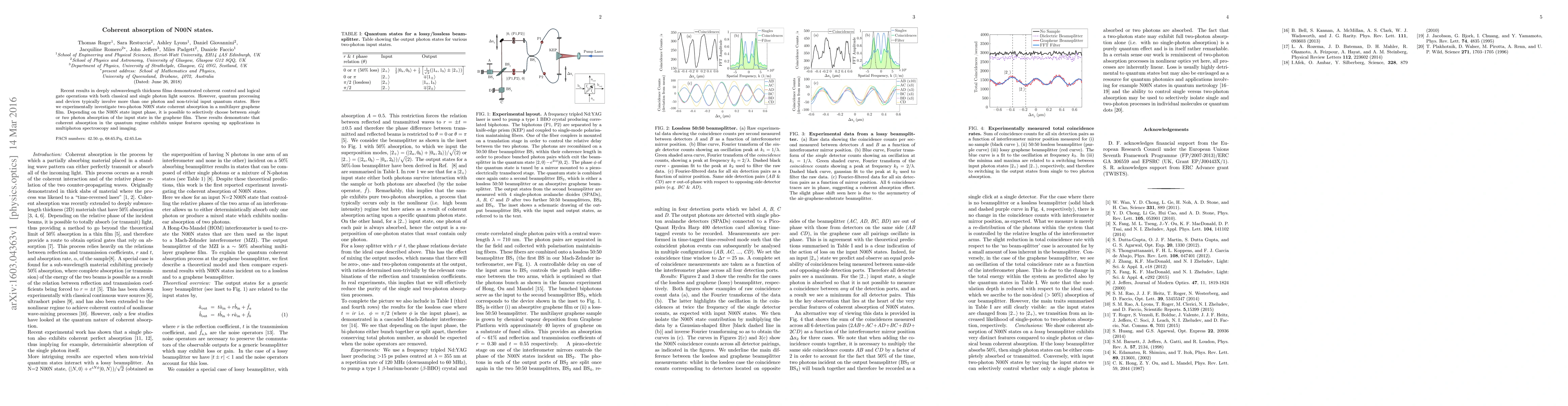 The paper presents experimental investigation and theoretical explanation of two-photon N00N state coherent absorption in a multilayer graphene film, demonstrating selective single or two-photon absorption based on input phase.