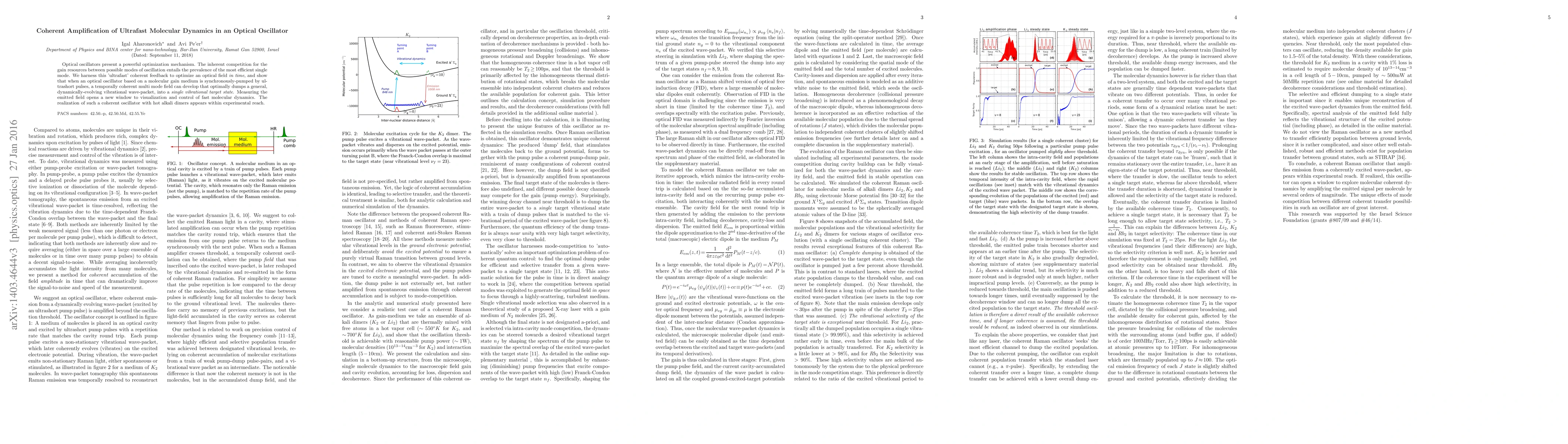 This paper demonstrates the use of an optical oscillator with a molecular gain medium to optimize ultrafast molecular dynamics through coherent amplification. By synchronously pumping the oscillator with ultrashort pulses, it can generate a temporally coherent multi-mode field that efficiently targets specific vibrational states, offering a new method for visualizing and controlling dynamic molecular processes.