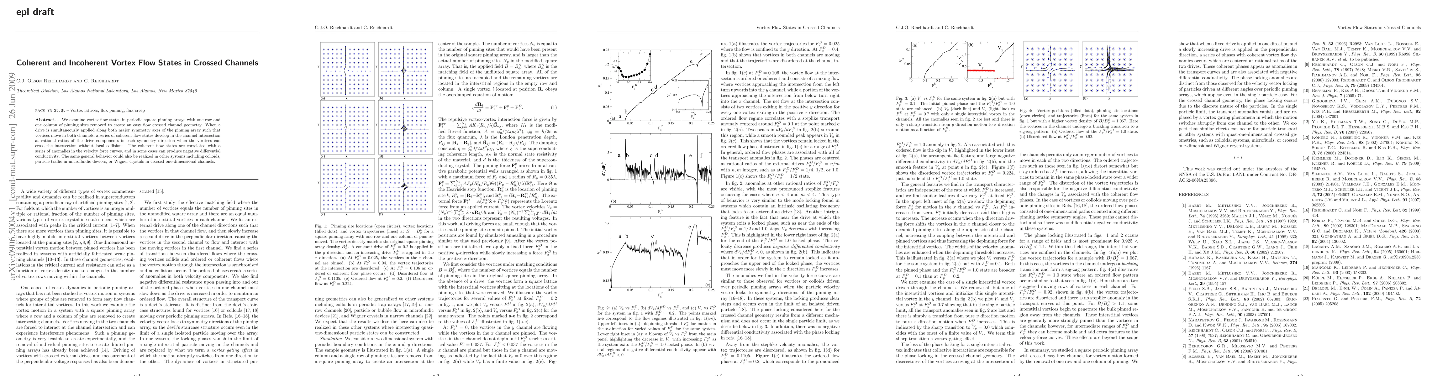 We examine vortex flow states in periodic square pinning arrays with one row and one column of pinning sites removed to create an easy flow crossed channel geometry. When a drive is simultaneously applied along both major symmetry axes of the pinning array such that vortices move in both channels, a series of coherent flow states develop in the channel intersection at rational ratios of the drive components in each symmetry direction when the vortices can cross the intersection without local collisions. The coherent flow states are correlated with a series of anomalies in the velocity force curves, and in some cases can produce negative differential conductivity. The same general behavior could also be realized in other systems including colloids, particle traffic in microfluidic devices, or Wigner crystals in crossed one-dimensional channels.